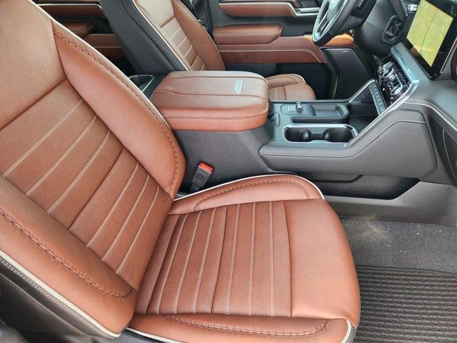 GVWR, 14,000 LBS. (6350 KG) WITH DUAL REAR WHEELS, AUDIO SYSTEM, 13.4 DIAGONAL PREMIUM GMC INFOTAINMENT SYSTEM with Google built in apps such as navigation and voice assistance, includes color touch-screen, multi-touch display, AM/FM stereo, Bluetooth® streaming audio for music and most phones; featuring wireless Android Auto and Apple CarPlay capability for compatible phones. (STD), ENGINE, DURAMAX 6.6L TURBO-DIESEL V8, B20-DIESEL COMPATIBLE (470 hp [350.5 kW] @ 2800 rpm, 975 lb-ft of torque [1322 Nm] @ 1600 rpm) (STD), TRANSMISSION, 10-SPEED AUTOMATIC (STD). GMC Denali Ultimate with Glacier White Tricoat exterior and Alpine Umber interior features a 8 Cylinder Engine with 470 HP at 2800 RPM*.