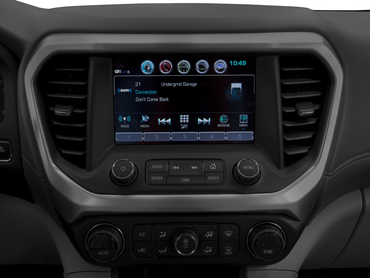SUNROOF, DUAL SKYSCAPE 2-PANEL POWER with tilt-sliding front and fixed rear with sunscreen, ENGINE, 3.6L V6, SIDI, DOHC with Variable Valve Timing (VVT) (310 hp [231.1 kW] @ 6600 rpm, 271 lb-ft of torque @ 5000 rpm [365.9 N-m]), TRAILERING PACKAGE INCLUDES FACTORY-INSTALLED HITCH 4000 lb. towing, 7-pin wiring harness, Class III hitch and (V08) heavy-duty cooling system, AUDIO SYSTEM, 8 DIAGONAL COLOR TOUCH SCREEN NAVIGATION WITH INTELLILINK, AM/FM/SIRIUSXM USB ports, auxiliary jack, Bluetooth® streaming audio for music and most phones, advanced phone integration featuring Apple CarPlay, Android Auto and voice-activated technology for radio and phone, TRANSMISSION, 6-SPEED AUTOMATIC. GMC SLT with Crimson Red Tintcoat exterior and Cocoa/ Light Ash Gray interior features a V6 Cylinder Engine with 310 HP at 6600 RPM*.