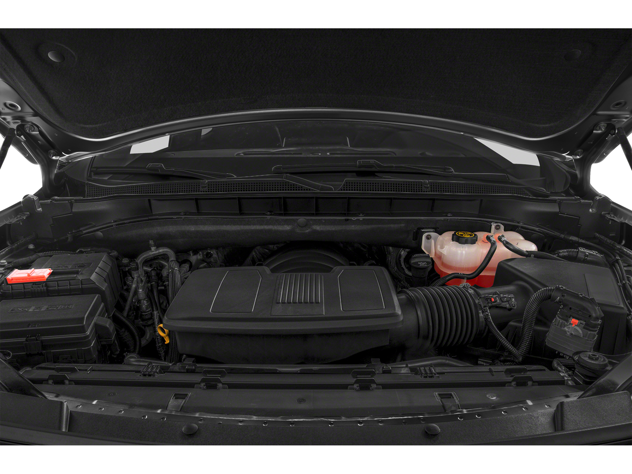 SUNROOF, POWER PANORAMIC, DUAL-PANE, TILT-SLIDING with express-open and close and power sunshade, SEATS, SECOND ROW BUCKET, MANUAL, AUDIO SYSTEM, CHEVROLET INFOTAINMENT 3 PREMIUM SYSTEM WITH CONNECTED NAVIGATION, 10.2 DIAGONAL HD COLOR TOUCHSCREEN AM/FM stereo, Bluetooth® audio streaming for 2 active devices, Apple CarPlay and Android Auto capable, enhanced voice recognition, additional memory for in-vehicle apps, cloud connected personalization for select infotainment and vehicle settings. Subscription required for enhanced and connected services after trial period. ENGINE, 5.3L ECOTEC3 V8 with Dynamic Fuel Management, Direct Injection and Variable Valve Timing, includes aluminum block construction (355 hp [265 kW] @ 5600 rpm, 383 lb-ft of torque [518 Nm] @ 4100 rpm) (STD), TRANSMISSION, 10-SPEED AUTOMATIC electronically controlled with overdrive, includes Traction Select System including tow/haul (Most vehicles built on or after 6-7-2021 with a V8 engine will have (NSS) Not Equipped with Automatic Stop/Start, which removes Automatic Stop/Start, Engine control stop/start disable button and its content.) (STD). Chevrolet Z71 with Summit White exterior and Jet Black interior features a 8 Cylinder Engine with 355 HP at 5600 RPM*.