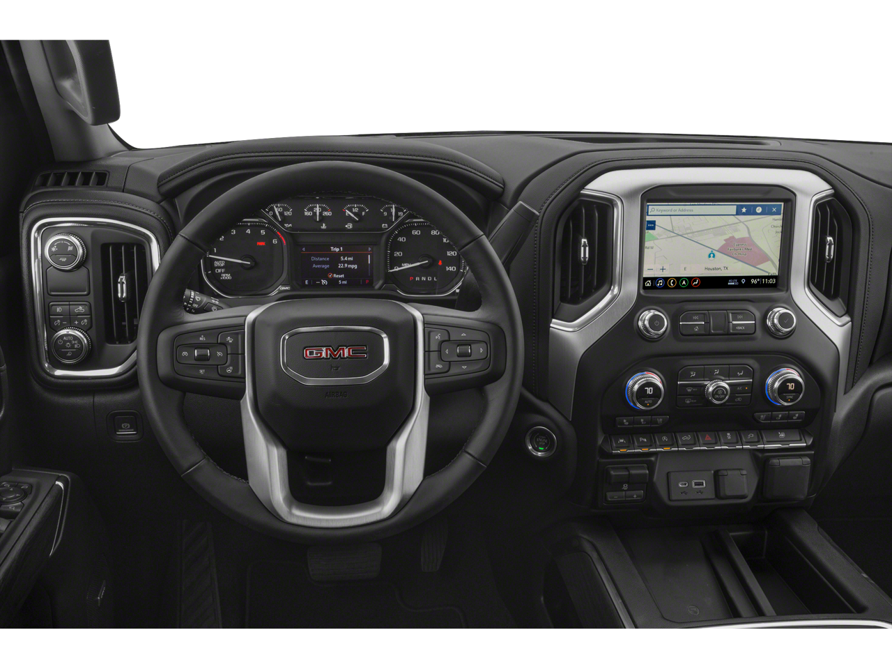 TEXAS EDITION SLT PREMIUM PACKAGE includes (PCY) SLT Convenience Package, (NZM) 20" Polished aluminum wheels, (BVT) Chrome assist steps and Texas Edition badging. AUDIO SYSTEM, PREMIUM GMC INFOTAINMENT SYSTEM WITH 8" DIAGONAL COLOR TOUCH-SCREEN, INCLUDES MULTI-TOUCH DISPLAY, AM/FM STEREO Bluetooth® streaming audio for music and most phones; featuring wireless Android Auto® and Apple CarPlay® capability for compatible phones, advanced voice recognition, in-vehicle apps, personalized profiles for infotainment and vehicle settings (Note: (PZ8) Hitch Guidance with hitch view is included with trim. Includes SiriusXM with 360L.) (STD), ENGINE, 5.3L ECOTEC3 V8 (355 hp [265 kW] @ 5600 rpm, 383 lb-ft of torque [518 Nm] @ 4100 rpm); featuring available Dynamic Fuel Management that enables the engine to operate in 17 different patterns between 2 and 8 cylinders, depending on demand, to optimize power delivery and efficiency (STD), TRANSMISSION, 8-SPEED AUTOMATIC, ELECTRONICALLY CONTROLLED with overdrive and tow/haul mode. Includes Cruise Grade Braking and Powertrain Grade Braking (STD), SLT CONVENIENCE PACKAGE includes (A50) bucket seats with (D07) center console, (KQV) ventilated front seats, (A48) rear sliding power window, (UG1) Universal Home Remote, (MCZ) 2 USB ports with auxiliary input (IP Mounted), (MCR) 2 USB Ports/SD Card/Aux Jack (Inside Console with bucket seats) and (KA6) rear heated seats (KA6) Heated Second Row Outboard Seats are included on Crew Cab models built before 7-26-2021. Certain vehicles built on or after 7-26-2021 will include (RFU) Not Equipped with Heated Second Row Outboard Seats, which removes (KA6) Heated Second Row Outboard Seats. See dealer for details.). GMC SLT with ONYX BLACK exterior and JET BLACK interior features a 8 Cylinder Engine with 355 HP at 5600 RPM*.