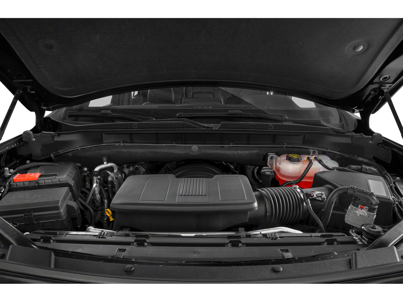 LUXURY PACKAGE includes (WPD) Driver Alert Package content, (UV2) HD Surround Vision, (UKK) Rear Pedestrian Alert, (A45) memory settings, (DXR) outside heated power-adjustable, power-folding, body-color mirrors with driver-side auto-dimming and integrated turn signal indicators, (N38) power tilt and telescopic steering column, (KI3) heated steering wheel, (KA6) second row outboard heated seats, (ATT) second row power 60/40 split-folding bench seats and (AS8) third row power 60/40 split-folding bench seats Vehicles built prior to December 6, 2021, include heated steering wheel. Certain vehicles built on or after December 6, 2021, will be forced to include (00G) Not Equipped with Heated Steering Wheel, which removes heated steering wheel. Vehicles built prior to March 14, 2022 and after, WHEELS, 20" X 9" (50.8 CM X 22.9 CM) PAINTED ALUMINUM WITH MACHINE FACE AND ARGENT METALLIC POCKETS, AUDIO SYSTEM, CHEVROLET INFOTAINMENT 3 PREMIUM SYSTEM WITH GOOGLE BUILT-IN 10.2" diagonal HD color touchscreen, includes multi-touch display, AM/FM stereo, Bluetooth® streaming audio for music and most phones; featuring wireless Android Auto® and Apple CarPlay® capability for compatible phones, advanced voice recognition, in-vehicle apps, personalized profiles for infotainment and vehicle settings (STD), STEERING WHEEL, HEATED Vehicles built prior to December 6, 2021 and after March 27, 2022, include heated steering wheel. Certain vehicles built on or after December 6, 2021 through March 27, 2022, will be forced to include (00G) Not Equipped with Heated Steering Wheel, which removes heated steering wheel. See dealer for details or the window label for the features on a specific vehicle.), ENGINE, 5.3L ECOTEC3 V8 with Dynamic Fuel Management, Direct Injection and Variable Valve Timing, includes aluminum block construction (355 hp [265 kW] @ 5600 rpm, 383 lb-ft of torque [518 Nm] @ 4100 rpm) (STD), TRANSMISSION, 10-SPEED AUTOMATIC electronically controlled with overdrive, includes Traction Select System including tow/haul (Standard with (L84) 5.3L EcoTec3 V8 engine only.) (STD), DRIVER ALERT PACKAGE includes (UKC) Lane Change Alert with Side Blind Zone Alert and (UFG) Rear Cross Traffic Alert. Chevrolet LT with Summit White exterior and Jet Black interior features a 8 Cylinder Engine with 355 HP at 5600 RPM*.