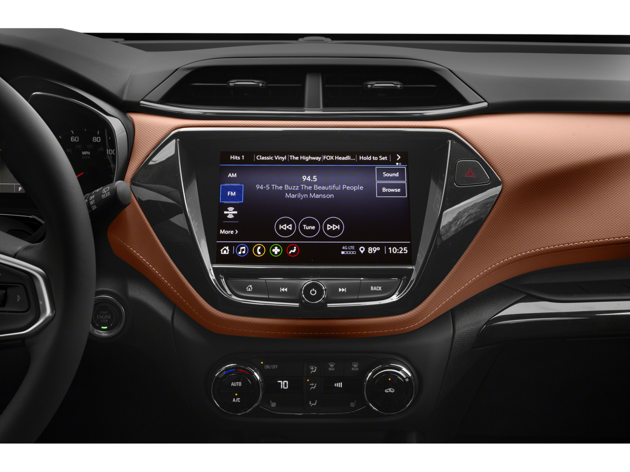 SUN AND LIFTGATE PACKAGE includes (C3U) power, dual-pane, panoramic sunroof and (TC2) power, programmable hands-free liftgate with LED logo projection, TECHNOLOGY PACKAGE includes (IOS) Chevrolet Infotainment 3 Plus system, (U2L) HD Radio, SiriusXM with 360L, (UQA) Bose premium 7-speaker system, (MCR) memory card receptacle, (K4C) Wireless Charging, (KSG) Adaptive Cruise Control, (UVB) HD Rear Vision Camera, (UDD) enhanced, 4.2" diagonal multi-color display Driver Information Center and (T4L) LED headlamps, CONVENIENCE PACKAGE includes (C68) automatic climate control air conditioning, (UIJ) 8" diagonal color touchscreen display, (USS) one type-A and one type-C charging only USB ports, (KI6) 120-volt power outlet, (DD8) inside rearview auto-dimming mirror and (DMS) driver and front passenger illuminated vanity mirrors, covered, sliding visors, DRIVER CONFIDENCE PACKAGE includes (UKC) Lane Change Alert with Side Blind Zone Alert, (UFG) Rear Cross Traffic Alert and (UD7) Rear Park Assist (Vehicles built prior to January 10, 2022 include Rear Park Assist. Certain vehicles built on or after January 10, 2022, will be forced to include (00Y) Not Equipped with Rear Park Assist, which removes Rear Park Assist. See dealer for details or the window label for the features on a specific vehicle.), AUDIO SYSTEM, CHEVROLET INFOTAINMENT 3 PLUS SYSTEM 8" diagonal HD color touchscreen, AM/FM stereo, Bluetooth® audio streaming for 2 active devices, Apple CarPlay® and Android Auto® capable, voice recognition, in-vehicle apps, cloud connected personalization for select infotainment and vehicle settings. ENGINE, ECOTEC 1.3L I3 TURBO DOHC SIDI WITH VARIABLE VALVE TIMING (VVT) (155 hp [115 kW] @ 5600 rpm, 174 lb-ft torque [236 N-m] @ 1600 rpm) (STD), TRANSMISSION, CONTINUOUSLY VARIABLE (CVT) (STD). Chevrolet ACTIV with Summit White exterior and Jet Black with Arizona accents interior features a 3 Cylinder Engine with 155 HP at 5600 RPM*.