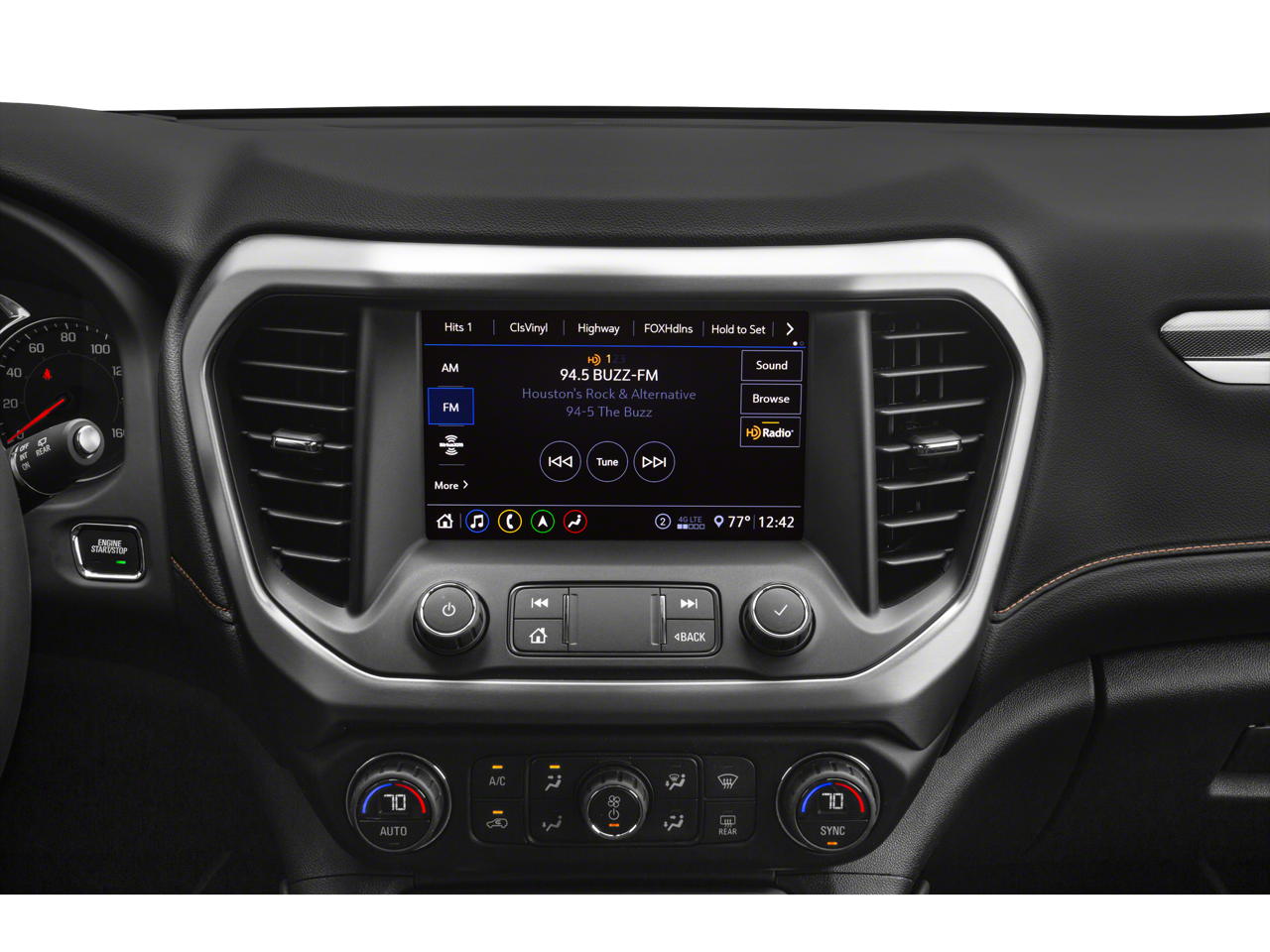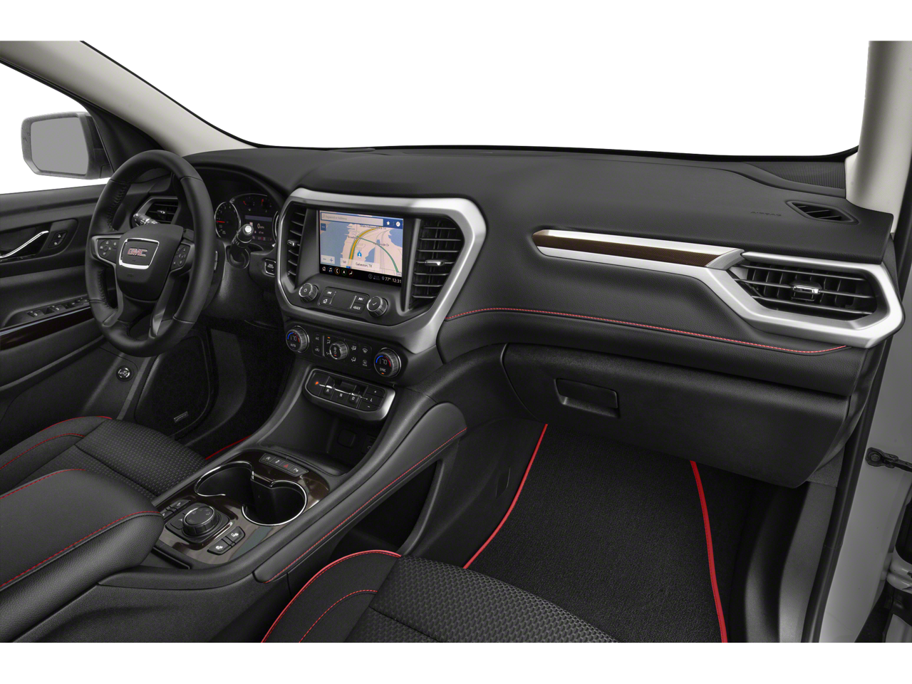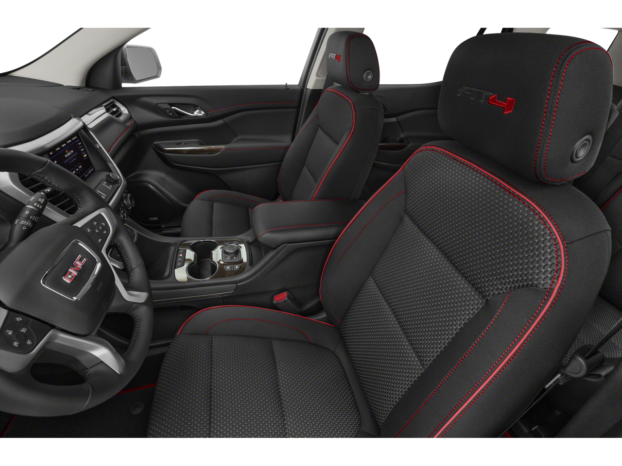 SUNROOF, DUAL SKYSCAPE 2-PANEL POWER with tilt-sliding front and fixed rear with sunscreen, TECHNOLOGY PACKAGE includes (UV2) HD Surround Vision and (UV6) Head Up Display, TRAILERING PACKAGE includes factory-installed hitch, 4000 lbs. towing, 7-pin wiring harness, Class III hitch, (V08) heavy-duty cooling system, (PZ8) Hitch Guidance with Hitch View and (CTT) Hitch Guidance (Also includes (KW7) 170-amp alternator.), AUDIO SYSTEM, 8 DIAGONAL GMC INFOTAINMENT SYSTEM WITH NAVIGATION includes multi-touch display, AM/FM/SiriusXM stereo, Bluetooth® streaming audio for music and most phones, Android Auto and Apple CarPlay capability for compatible phones, advanced voice recognition, in-vehicle apps, personalized profiles for infotainment and vehicle settings (STD), ENGINE, 3.6L V6, SIDI, DOHC with Variable Valve Timing (VVT) (310 hp [231.1 kW] @ 6600 rpm, 271 lb-ft of torque [365.9 N-m]) @ 5000 rpm (STD), TRANSMISSION, 9-SPEED AUTOMATIC, ELECTRONICALLY-CONTROLLED with 3.6L V6 engine (STD), LUXURY PACKAGE includes (AAB) Memory Package for power driver seat and outside mirrors, (A7K) 8-way power front passenger seat adjuster, (DYX) outside heated power-adjustable power-folding body-color mirrors with driver-side auto-dimming with integrated turn signal indicators, (AT9) power passenger lumbar control, (KU9) heated and ventilated driver and front passenger seats, (KA6) heated rear outboard seats and (N38) power tilt and telescopic steering column (Certain vehicles built between November 15, 2021 and February 20, 2022 and after March 13, 2022 through May 1, 2022 will be forced to include (00V) Not Equipped with Driver and Front Passenger Ventilated Seats and (00R) Not Equipped with Heated Rear Outboard Seats, which removes driver and front passenger ventilated seats and heated. GMC AT4 with SUMMIT WHITE exterior and JET BLACK PERFORATED LEATHER-APPOINTED SEATING interior features a V6 Cylinder Engine with 310 HP at 6600 RPM*.